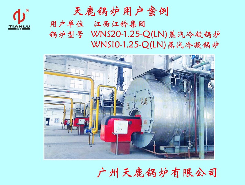 江西江鈴集團(tuán)2臺(tái)WNS20-1.25-Q(LN) 1臺(tái)WNS10-1.25-Q(LN)蒸汽冷凝鍋爐