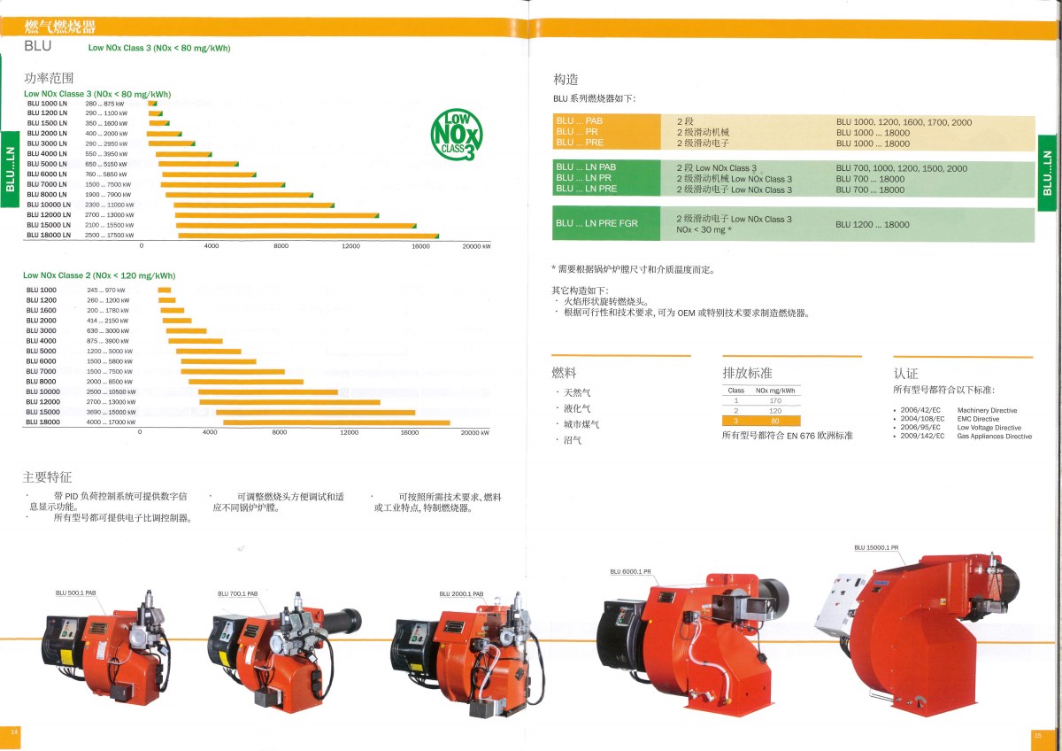 主要特征: 1、帶PID負(fù)荷控制系統(tǒng)可提供數(shù)字信息顯示功能;所有型號都可提供電子比調(diào)控制器。 2、可調(diào)整燃燒頭方便調(diào)試和適應(yīng)不同鍋爐爐膛。 3、可按照所需技術(shù)要求、燃料或工業(yè)特點(diǎn),特制燃燒器。 4、適用燃料為:天然氣、液化氣、城市煤氣